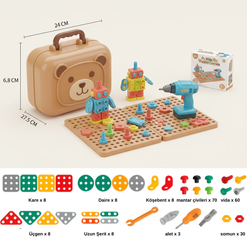 - ⏰ Çocukla saatlerce sıkılmadan oynayabileceği eğitici oyuncak seti
